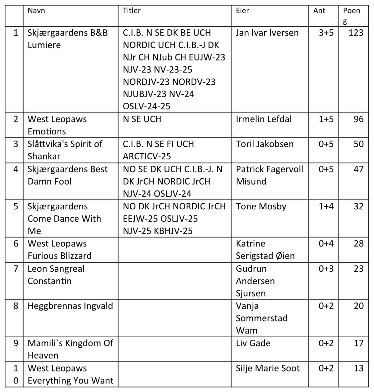Mestvinnende hannhunder