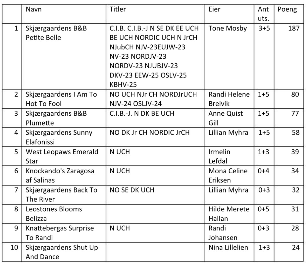 Mestvinnerlister 2025
